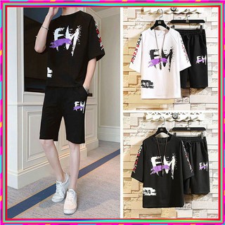 Combo Bộ Quần Áo Hè Thun Nam Áo Tay Ngắn Cổ Tròn Graffiti Phối Quần Short Đùi Zenkocs3 MEN TOP 200 + SHORTS 050