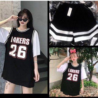 Sét Bộ Quần Áo Nam Nữ Mặc Hè Đùi Ngắn, Áo Phông Cotton Thun Mát Mịn In Chữ I Akers 26 Kèm Quần V xẻ Mặc Đi Chơi