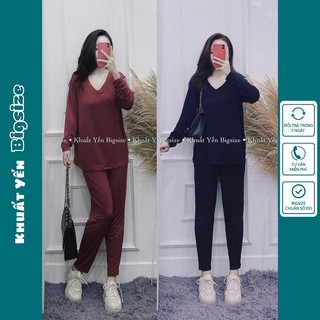 Set bộ quần set Bigsize thu đông cổ tim form rộng tay dài 50kg đến 100kg Khuất Yến