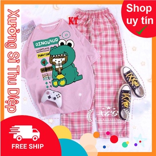 Đồ Bộ Nữ Quần Caro Ống Rộng Áo Thun Unisex Ku Shin- Lapi VN, Nhiều Mẫu, Chất Vải Thoáng Mát,Form Rộng Freesize