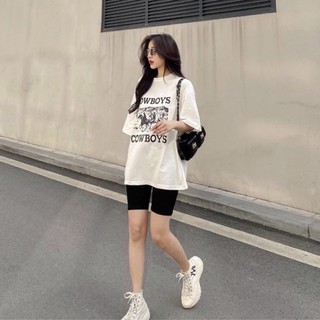 Set áo thun trắng COWBOYS kèm quần legging ngố đen
