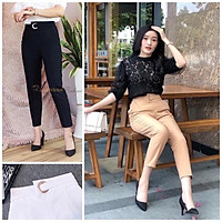 Quần baggy nữ cạp cao vải umi co dãn đai da công sở đi chơi lệ chuẩn form đứng quần màu đen