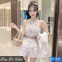 Bikini len siêu đẹp cùng chân váy ren điệu đà, đồ bơi len ren sexy quyến rũ, có sẵn đệm mút, chất len cotton đẹp | KT101