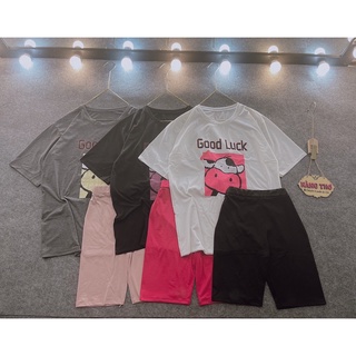 Set quần ngố áo phỏmojng giấu quần in nhiê “Good luck”