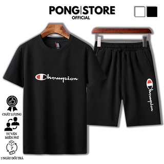 Bộ quần áo thể thao nam mùa hè xu hướng 2022, bộ quần áo nam thể thao mặc nhà tay ngắn phối quần short mẫu CHAMP
