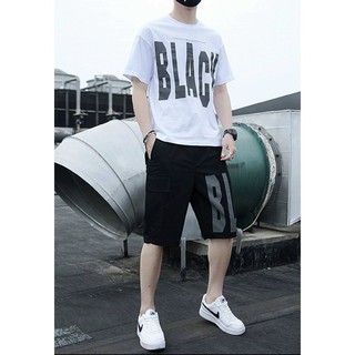 Set bộ áo thun phối quần ngố đen 1002