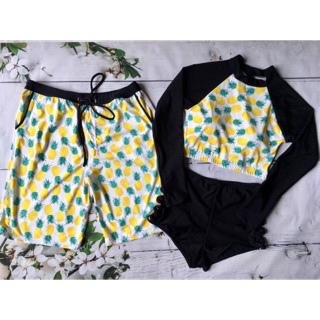 Đồ bơi cặp nam nữ đi biển kèm áo yếm