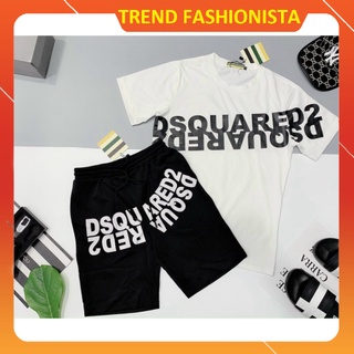 Bộ thể thao nam in chữ áo thun cổ tròn quần đùi ống rộng chất thun mềm mịn