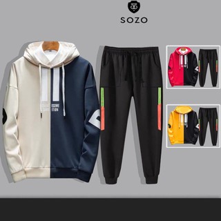 Set Bộ 2 Món Quần Dài + Áo Hoodie Nón Nam Nữ Unisex Chất Vải Nỉ CB2_WAH104NO_MQU075NODEF7 (Because + 2 Sọc Túi Vuông)