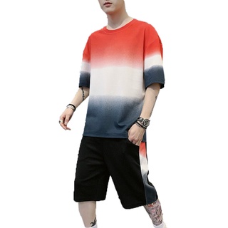 Bộ thể thao nam mùa hè cổ tròn cộc tay thoáng mát Đồ bộ quần áo thể thao nam mặc nhà thun lạnh