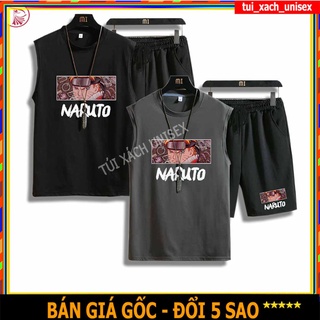 Set áo phông quần short đùi nam nữ sát nách ba lỗ in hình NARUTO Bộ cộc tay from rộng ulzzang trơn thun unisex dạo phố
