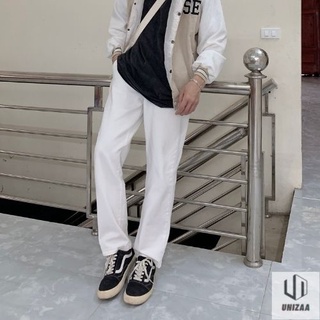 Quần jean nam ống rộng trắng đen baggy đứng chất bò cao cấp nữ không rách gối unisex rin bó form rộng QD17