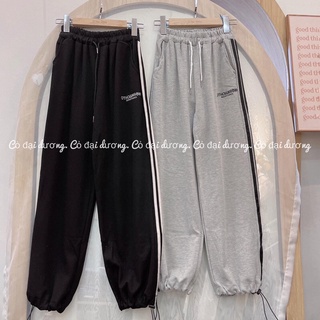 Quần thun jogger thể thao 3 sọc có dây rút Nam nữ unisex Quần thun ống suông form rộng