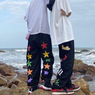 Quần Jogger Pant Ulzzang Unisex Jogger Dây Rút Lai In Hình Ngôi Sao Ống Rộng Dài - MM