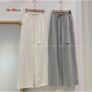 Quần Ống Rộng Ulzzang Dáng Dài Vải Nhung Tăm Cạp Chun