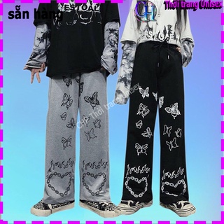 SIÊU PHẨM Quần Ống Rộng Nam Nữ Jogger In Hoa Nỉ da cá Dây Rút Ở Gấu - Kiểu quần ống rộng cạp cao Unisex