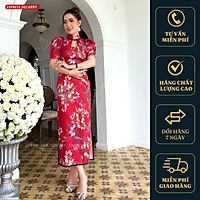 Sườn Xám Cổ Tàu Trung Hoa Lụa Ánh Kim Tone Đỏ Sang Trọng Mia Dress