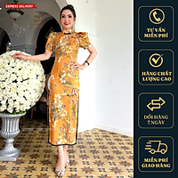 Sườn Xám Cổ Tàu Trung Hoa Lụa Ánh Kim Tone Vàng Sang Trọng Mia Dress