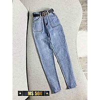 Quần jean nữ xanh trơn lưng cao 3 cúc cao cấp -chất denim co dãn tốt - quần chuẫn shop BEN Shop0807 HN12