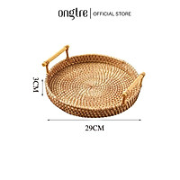 Khay mây tròn có tay cầm ONGTRE đựng đồ, trang trí tiệc, decor chụp ảnh sản phẩm