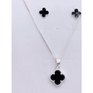 BỘ TRANG SỨC BẠC TA CỎ 4 LÁ ĐEN MAY MẮN