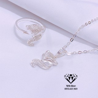 Bộ trang sức bạc ta hồ ly gắn đá trắng nhỏ - Bibi silver - BBS