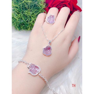 Bộ trang sức hồ ly bạc may mắn tình duyên 4 món dây chuyền-nhẫn-bông tai-lắc tay đủ màu phong thuỷ