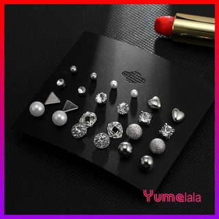 Set 12 đôi bông tai, khuyên tai đính hạt phong cách Hàn Quốc (mã 02)