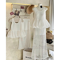 Set áo croptop trắng kèm chân váy xoè tiểu thư hàn quốc 2 mẫu