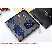 Ca Vat bộ 3 món kèm hộp túi xách cao cấp, quà tặng chú rể, Cavat họa tiết chìm