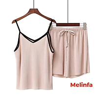 Bộ đồ ngủ nữ, bộ mặc nhà áo hai dây lụa lạnh cổ V, quần short basic trơn nhiều màu mã VABD0116