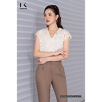 Áo Sơ Mi Ren Vai Chờm Cổ Kiểu NK FASHION Thiết Kế Ngắn Tay, Thanh Lịch, Sang Trọng Chất Liệu Nhập Hàn Cao Cấp NKSM2206014