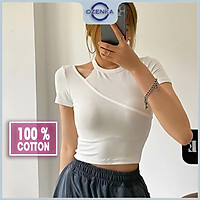 Áo croptop tay ngắn ôm hở vai cổ tròn, áo thun crt roptop kiểu hàn quốc mẫu mới 2022 100% cotton đen trắng