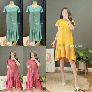 Váy Bầu Công Sở Đầm Bầu Dáng Suông Chất Mát Có Cúc