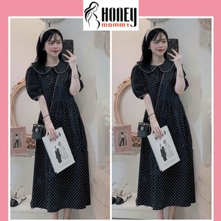 Váy Bầu Mùa Hè Công Sở Cổ Sen Chấm Bi Đầm Bầu Thời Trang Thiết Kế Đẹp Đi Làm HD2844 Honey Mommy