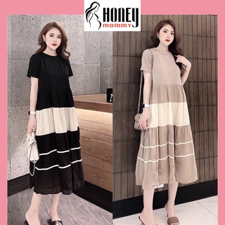 Đầm Bầu Váy Bầu Yếm 2 Dây Dáng Xòe Mùa Hè Ngắn Tay Dáng Dài Đi Chơi Đi Làm HD2618 Honey Mommy