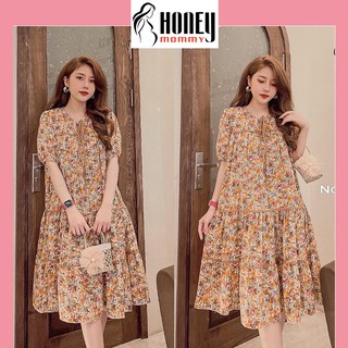 Đầm Bầu Váy Bầu Hoa Nhí Cổ Thắt Nơ Dáng Xòe Đi Chơi Dự Tiệc Mùa Hè Dáng Dài HD2847 Honey Mommy