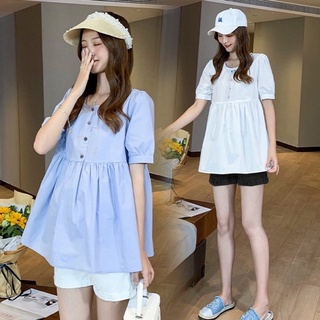 Áo bầu babby doll có cúc mở cho bé ti chất đũi tơ mát lạnh, from rộng thoải mái cho mẹ bầu
