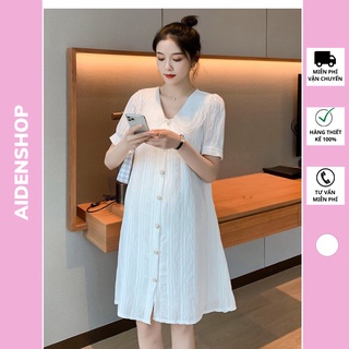 Váy bầu thiết kế Aidenshop đầm bầu mùa hè công sở dáng suông thời trang màu trắng sau sinh(45-65kg) VB2