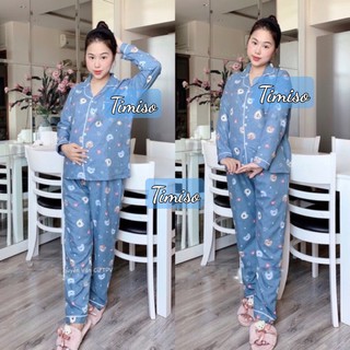 Đồ Bộ Bầu dài tay Pijama chất kate thái mặc bầu và sau sinh BPJM930 (Có khóa hoặc túi ngực như hình)