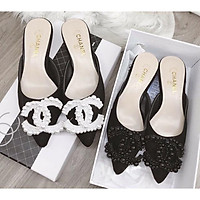 (SẴN HÀNG) Dép Bánh Mì Nữ Quai Chéo Đính Ren Hoa/ Đế Xuồng Cao 3Cm, 6Cm