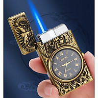 Vỏ Hột Quẹt Bật Lửa Gas HF602 Khò 1 Tia Hình Rồng Vàng Kiêm Đồng Hồ La Mã