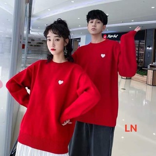 set 2 áo đoi nỉ đỏ cổ tròn lô gô tím diện Tết Noel