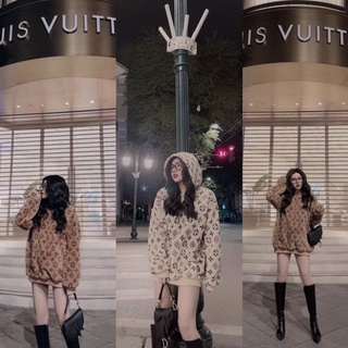 Áo Lông Nữ Ms.7992 Áo Hoodie Dáng Dài Có Mũ Họa Tiết Chữ Cá Tính, Chất Liệu Lông Mịn, Hai Màu Nâu Be
