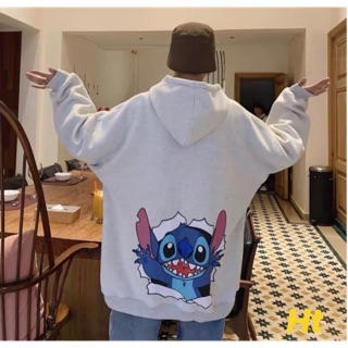 Áo hoodie nỉ mũ in Stitch chó tài thỏ xanh