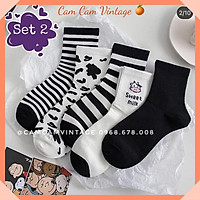 Set 5 tất nam nữ cổ cao vớ chất cotton in hình siêu dễ thương