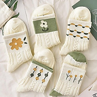 Bộ 5 Đôi Tất Nam Nữ Cao Cổ Vintage Style - Hàng Cao Cấp