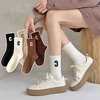 Combo 5 đôi tất chữ C cổ cao Nữ trơn , Vớ Cao cổ nữ chất vải mềm dày thoáng khí Cao Cấp