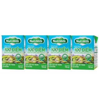 SỮA TƯƠI TIỆT TRÙNG VINAMILK 100% CÓ ĐƯỜNG - LỐC 4 HỘP X 180ML