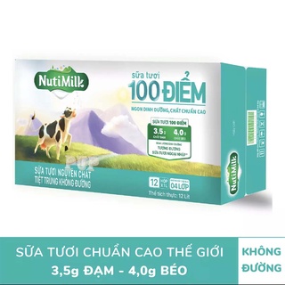 Thùng 12 Hộp Sữa Tươi Tiệt Trùng 100 Điểm Không Đường Nutimilk 1lít
